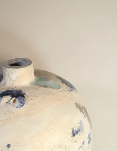 Moonjar, stoneware, uniquely built with coil technique, experimental glaze and fired at 1250 degrees.